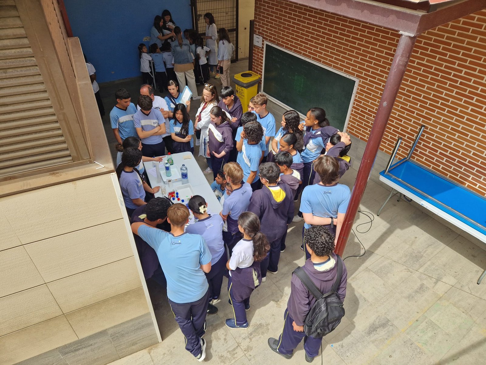 Ayer, el Patio de la Ciencia se transformó en un gran laboratorio interactivo. Durante las dos últimas horas de la jornada, los alumnos de 4º ESO, con la guía y colaboración de sus profes de ciencias, organizaron una feria de experimentos fascinante para todo el alumnado del centro.